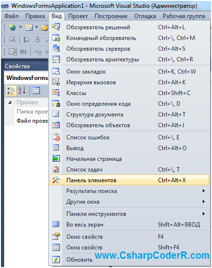 Создайте проект «Windows Form» в «Microsoft Visual Studio», для этого откройте Microsoft Visual Studio 2010 и перейдите в меню: файл -> создать проект…